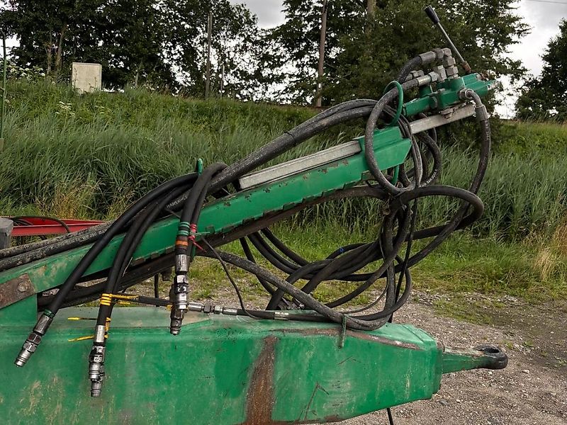 14 Breitverteiler ja Druckluftbremse ja Kratzboden ja Stauschieber ja Walzenanzahl 2 Tandemfahrwerk mit Parabel federung Gefederte Untenanhängung Stahlbordwände 3 mm stark Hydraulisch schwenkbare Rück wandklappe Zwei Rollböden mit vier gehärteten Rundstahlketten Stahlboden Stauschieberanzeige an der Frontwand Zwei Fräswalzen 2 Teller Breitstreuwerk ...