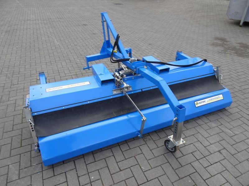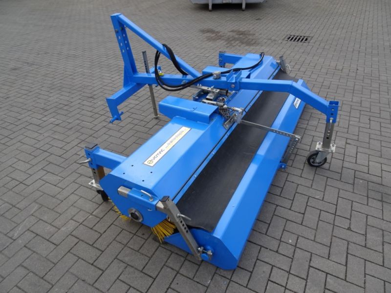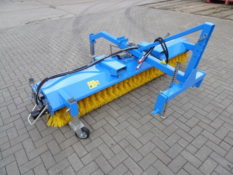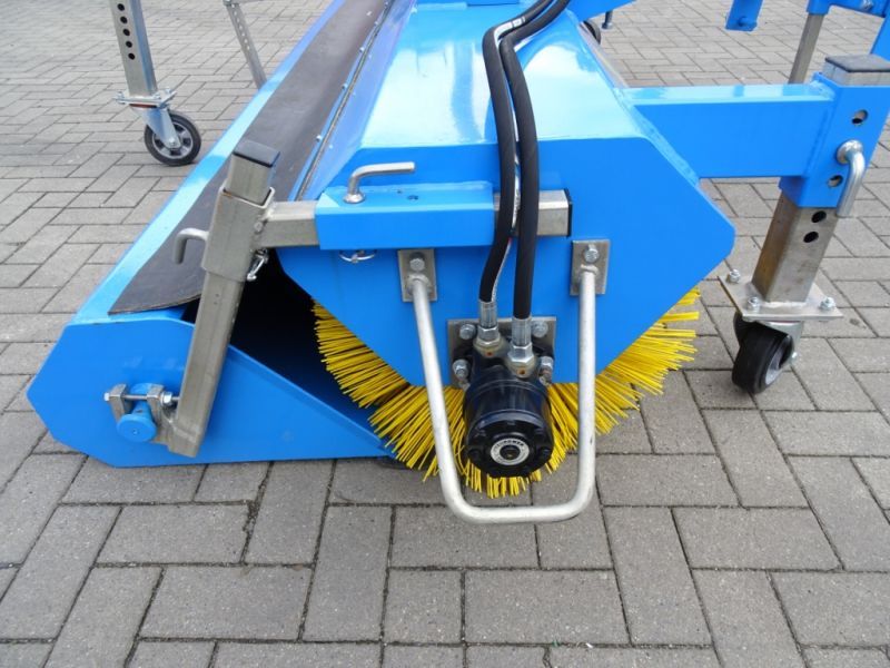 Anbaukehrmaschinen für Gabelstapler, Radlader und Hoftrac, mit Niveauausgleich und vorderem Stützrad, PPN-Kehrwalze mit 520 mm Durchmesser, Spritzschutz, hydraulischer Antrieb mit Schläuchen und Kupplungen, Schrägstelleinrichtung, höhenverstellbare Stützräder mit Metallfelgen, Schmutzsammelwanne mit hydraulischer Entleerung