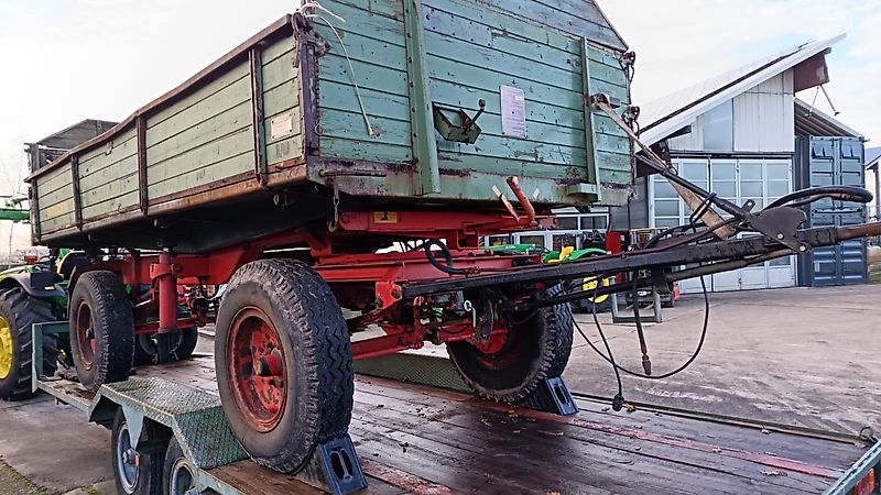 Alles noch im Originalzustand, Ausstattung: Absperrhahn für Schlepperhydraulik, Auslaufschieber in der Rückwand, Pendel-Aufsatzbretter, zentrale Kipplagerverriegelung, 2 Hubzylinder, Kastenmaß: 4,60m x 2,20m x 0,90m Bordwandhöhe(0,50m+0,40m),Hydraulikanschluss im Heck mit 7 poligen Stecker und Anhängerkupplung für zweiten Anhänger.